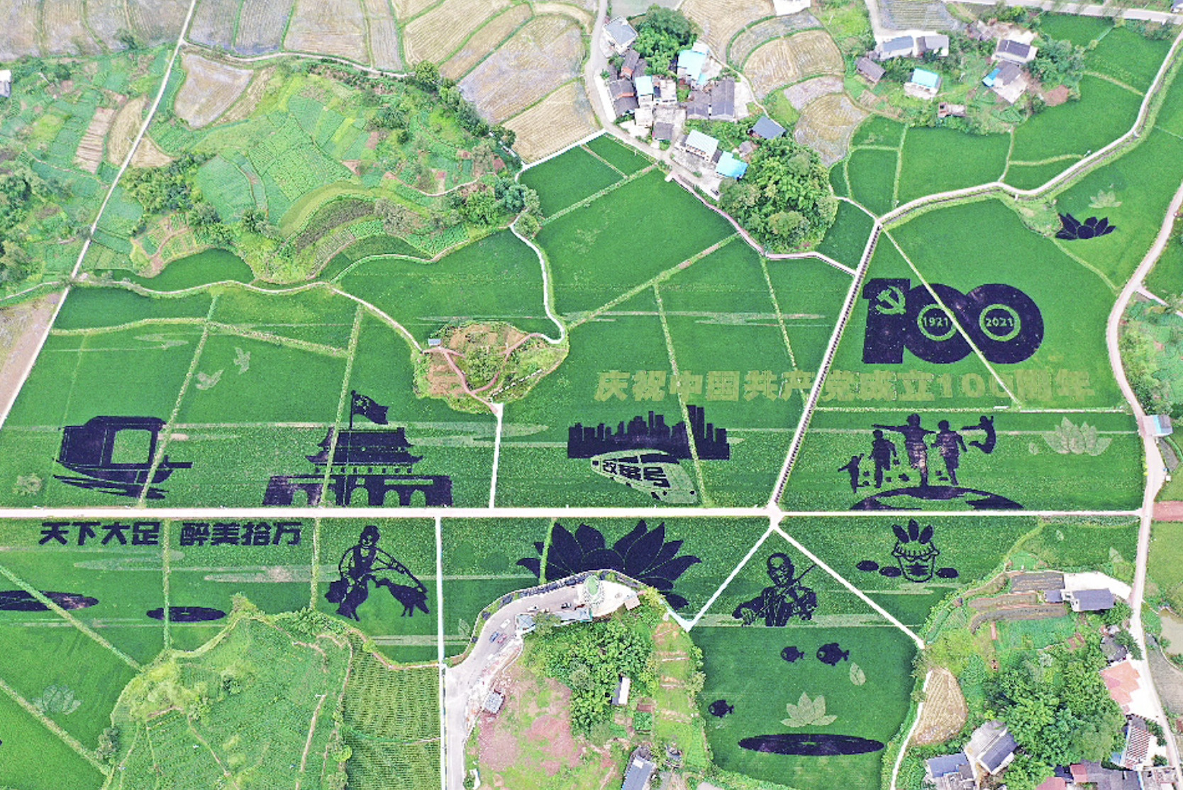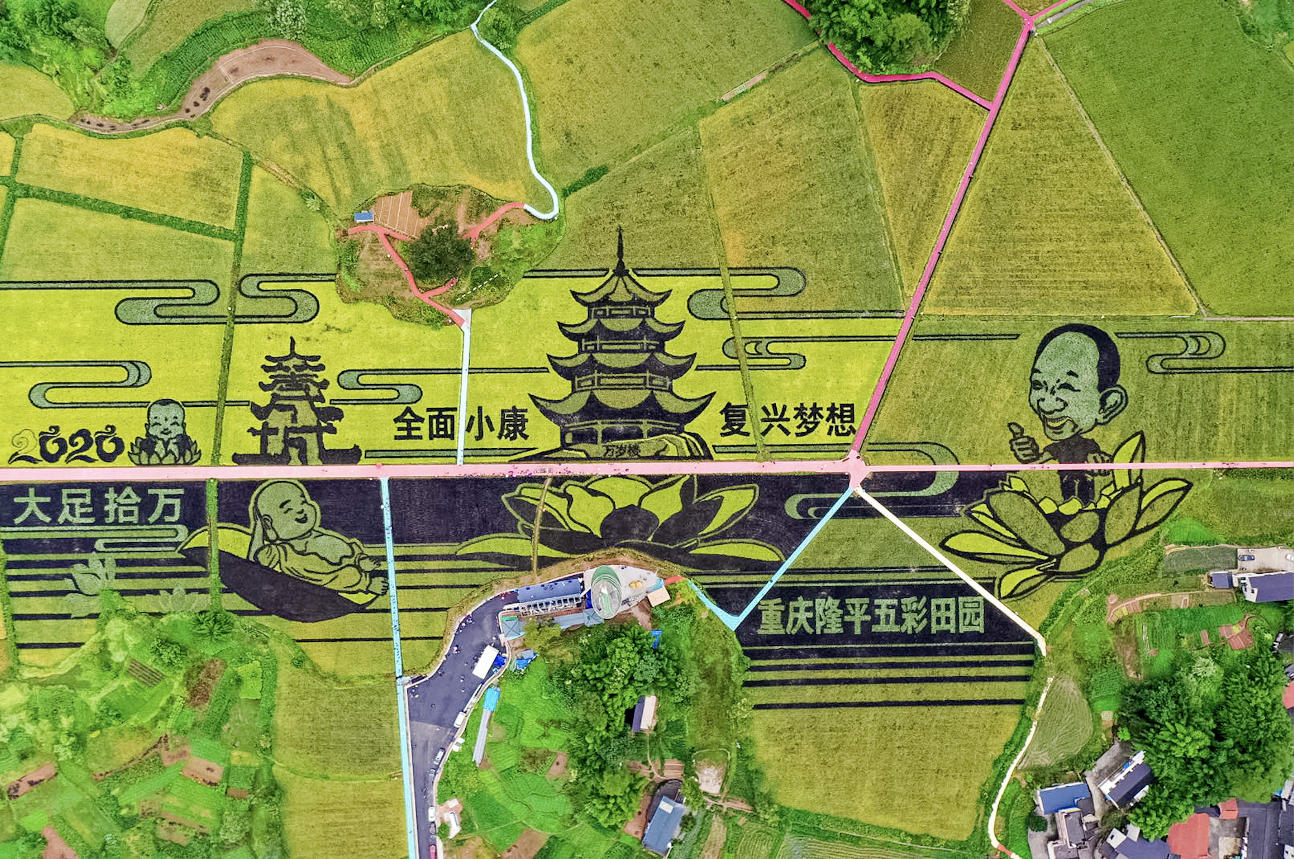 with beautiful natural scenery and organic integration of landscape art, Changhong Village has created an integrated rural complex that combines high-tech agriculture, leisure tourism, and science popularization research. The colorful pastoral "takes the soil as the scroll and the rice as the pen". By cultivating purple, red, yellow, green and white rice, it vividly "paints" elements such as national fact hotspots, rural revitalization, the image of academician Yuan Longping, and Dazu Rock Carvings in the rice fields of more than 500 mu, implanted in the hearts of the people of the country, and displayed the land art landscape.