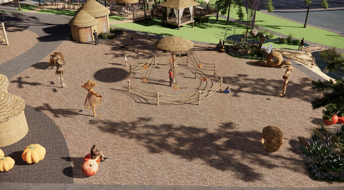 Daoxiaomi Amusement Park is located along the connecting road, adjacent to the main landscape of the colorful pastoral, covering an area of 5 acres. The theme of the amusement park is "Tracing the Origins of Mibao", with four main storyline of "Source of All Things", "Pastoral Song", "Golden Grain Harvest Warehouse", and "Abundant Grain" links the theme of the park. A total of 20 amusement rides are constructed, including "Aquatic Park", "Straw Fields", "Swing Granary", and "Rice Dream Space".